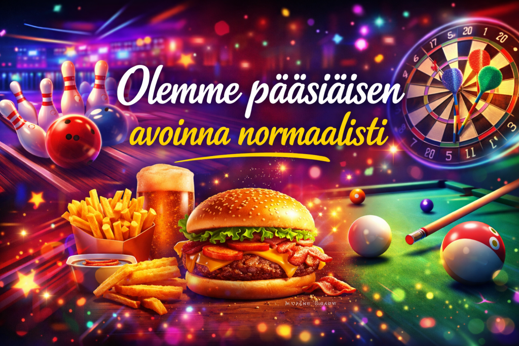 Pääsiäisenä vietetään aikaa läheisten kanssa ja nautitaan hyvistä peleistä, virvoitusjuomista sekä maistuvasta ruuasta saman pöydän ääressä. Tervetuloa Garagelle!