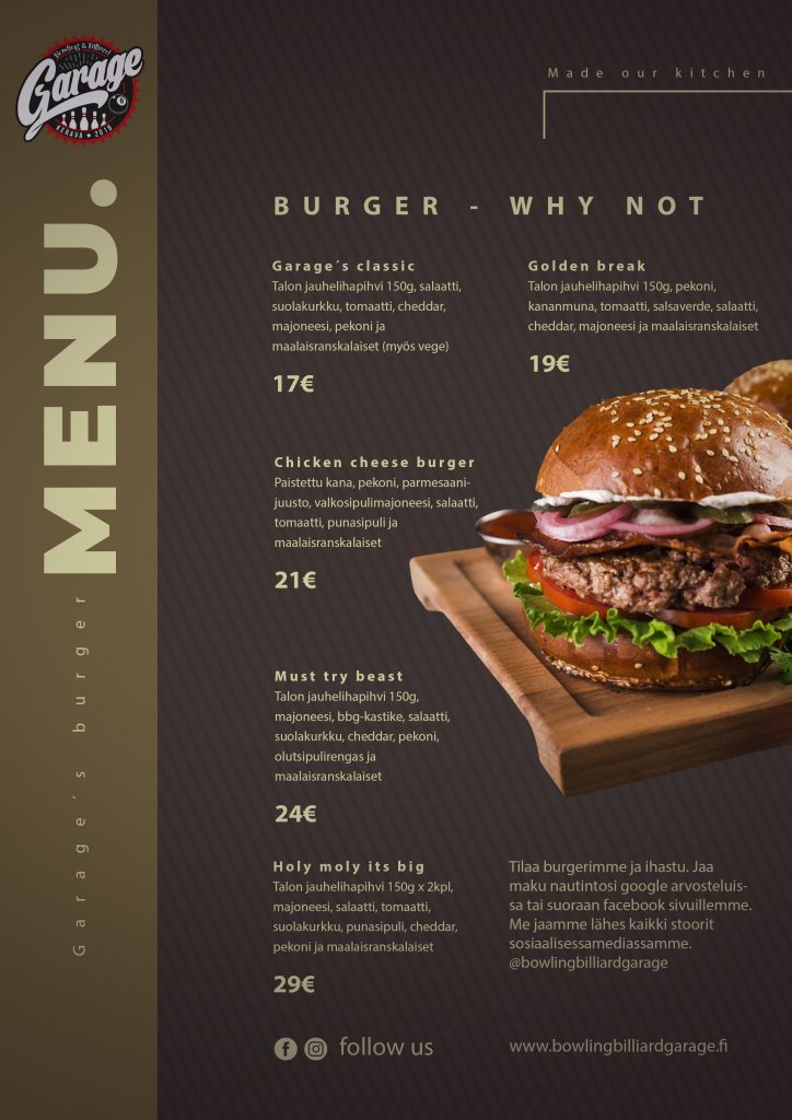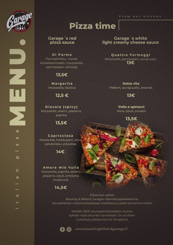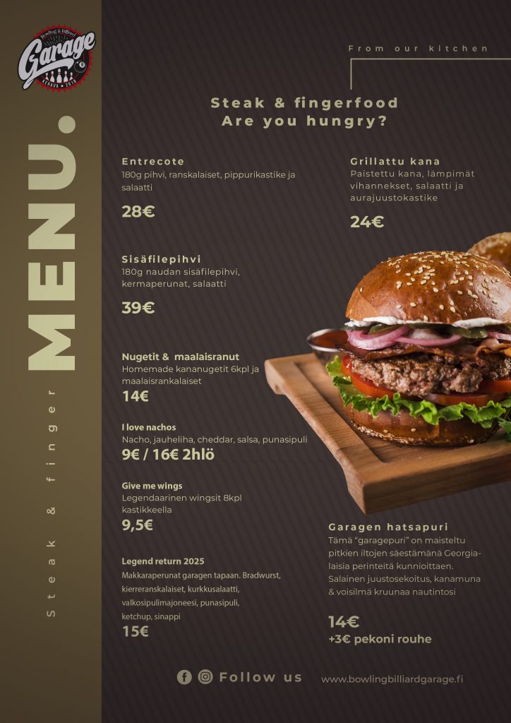 Garagen kokilla on 22vuoden kokemus kokin alalta. 10v Italiassa, jonka jälkeen veitset tuotiin Suomeen. Tervetuloa pelaamaan ja syömään saman katon alle! Me teemme kaikkemme, että lähdette hymyissä suin kotiin.